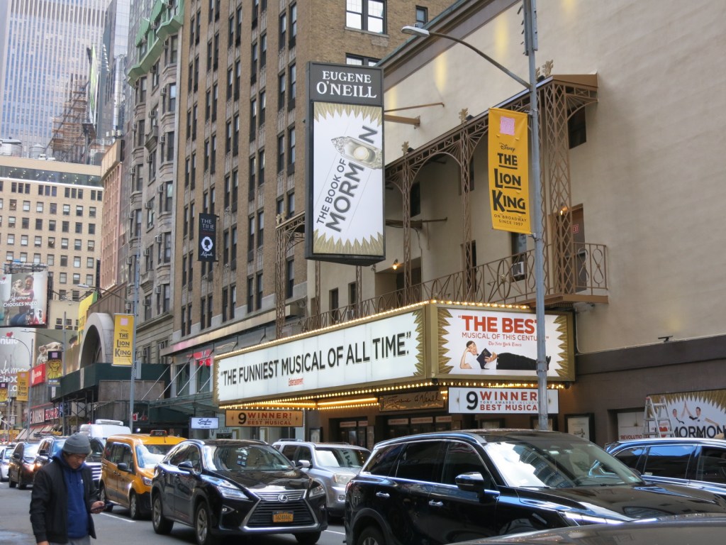 Am Abend stand dann noch „Kultur“ auf dem Programm. Broadway Musical „The Book of Mormon“. Das hätte ich mir aber definitiv auf einen anderen Tag legen sollen (Müdigkeit, Zeitverschiebung und so)…