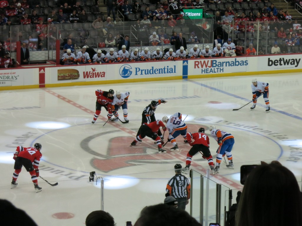 Am Abend Eishockey in New Jersey.