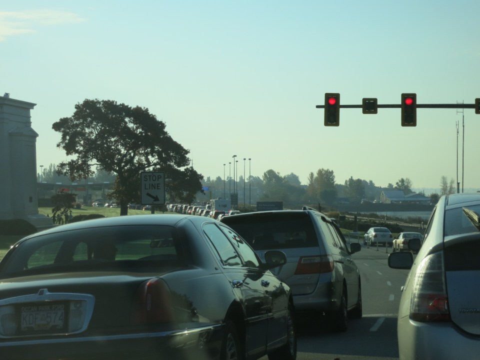 Warten, warten, warten. Wenn es hinter der Ampel fast leer ist, geht es weiter…