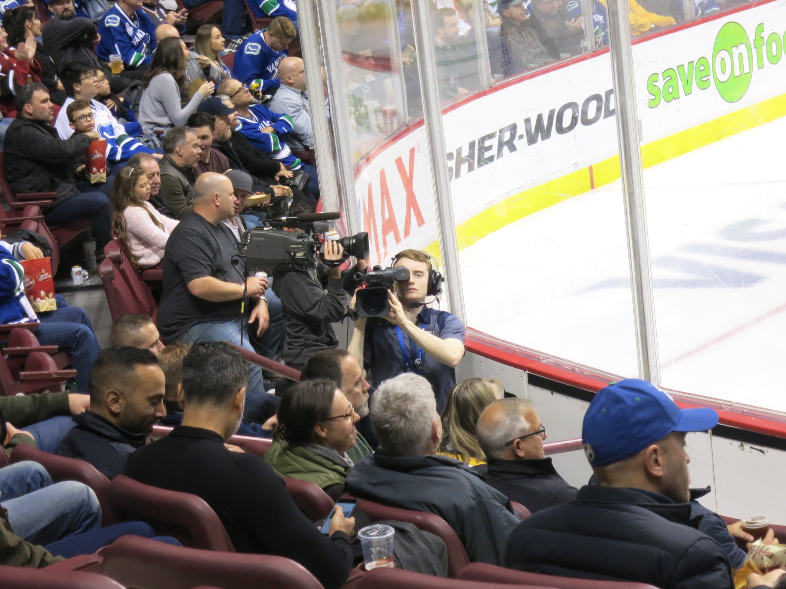 In der Pause zwischen 2. und 3. Drittel wurden wie üblich T-Shirts in die Menge gefeuert. Alle außer mir wollten eines haben – und mir knallt es natürlich an die Birne 😳